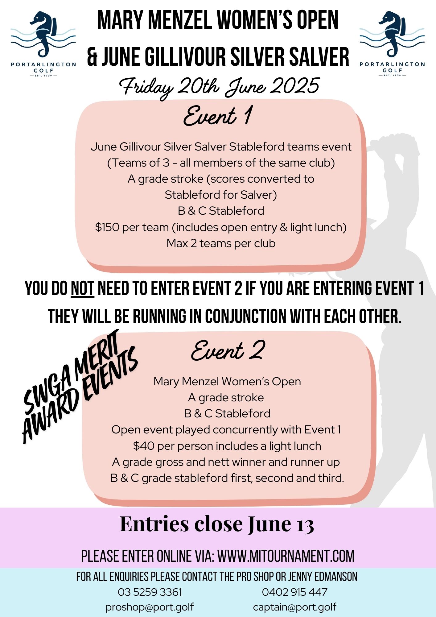 ENTRIES ONLINE VIA MITOURNAMENT - SEE FULL DETAILS HERE