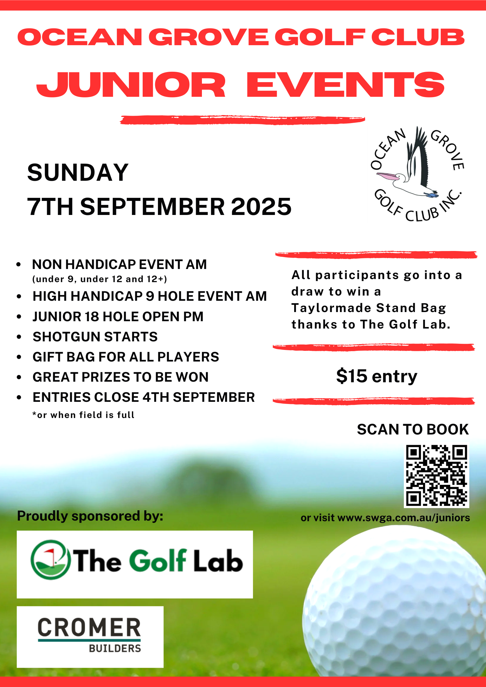 The Non-Handicap and Handicaps of over 45.0 for girls and over 36 for boys event will be played on a 9 hole shortened course in the AM (9am tee off). This event will be played as a modified stroke event.